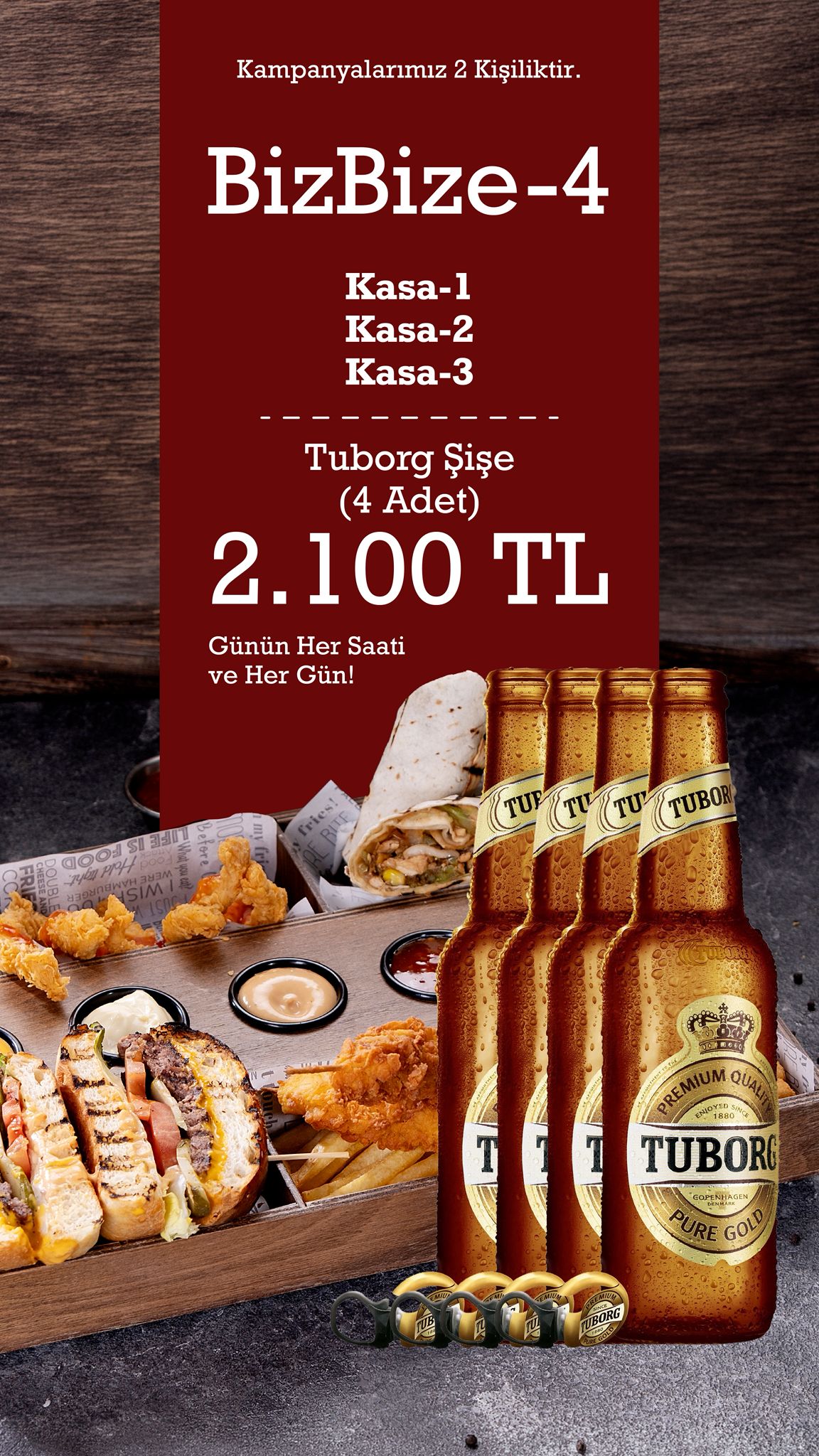 Özel çıtır kaplamalı çıtır tavuk, parmak patates, cheddar topları, çıtır jalapone, çıtır pop, sigara böreği, sosis, sweet-chili sos ve piatto sos eşliğinde